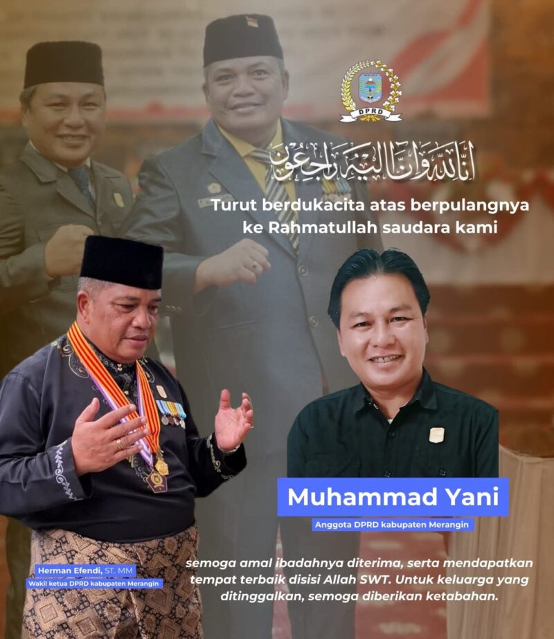 Atas kejadian tersebut, keluarga besar DPRD Kabupaten Merangin bersama pemerintah daerah menyampaikan rasa duka cita yang mendalam atas wafatnya Muhammad Yani. Jenazah almarhum direncanakan akan dibawa ke rumah duka di Kabupaten Merangin untuk disemayamkan sebelum dimakamkan di tempat pemakaman umum setempat.